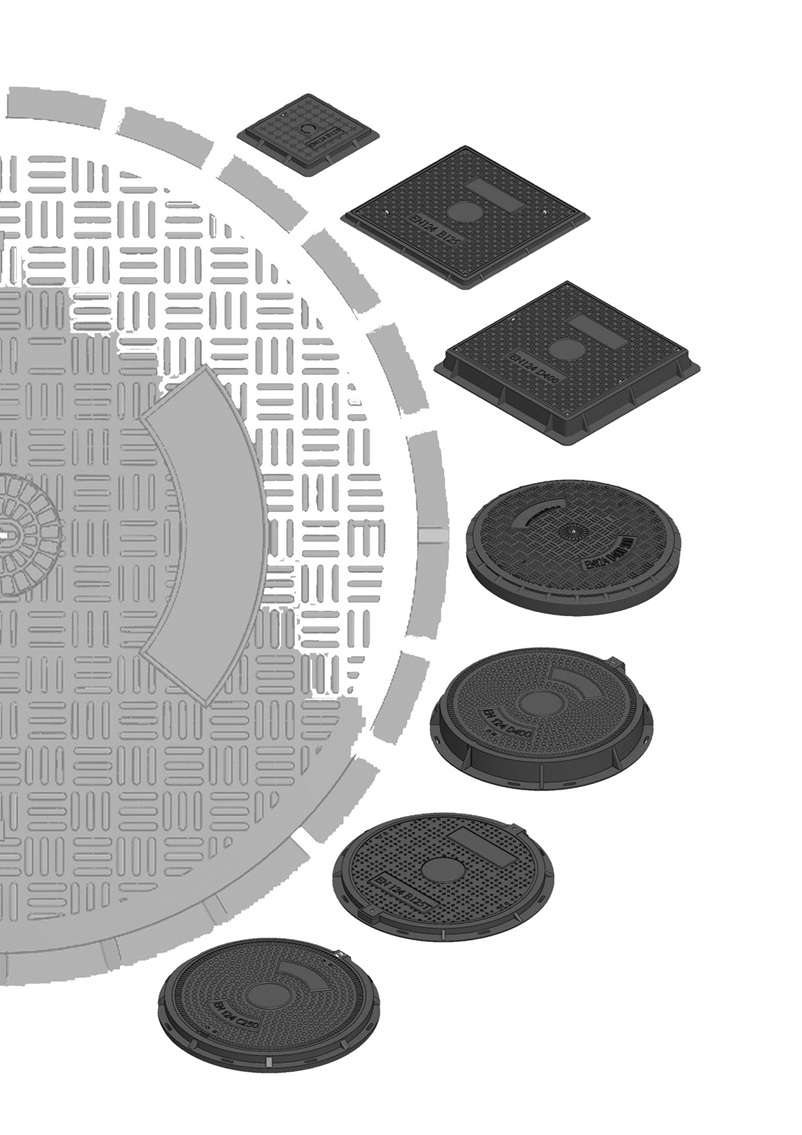 Selon la norme EN 124-5:2015 le processus de fabrication des tampons se révèle être de classe C3 (“Composite matériau C3” Point 4.2 Type of composite materials). Il s’agit d’un processus de moulage à compression dans un moule fermé à température contrôlée (SMC) avec l’utilisation de résines thermodurcissables (résine polyester), fibres de verre et autres additifs.